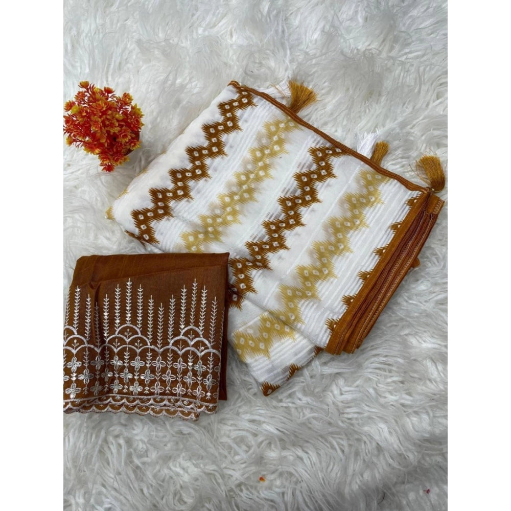 Generic Women's Chiffon Printed Saree With Unstitched Blouse 5.5Mtr (Brown)