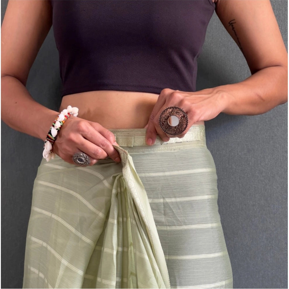 Women's Chiffon Striped Ready to wear Saree With Unstitched Blouse 5.5 Mtr