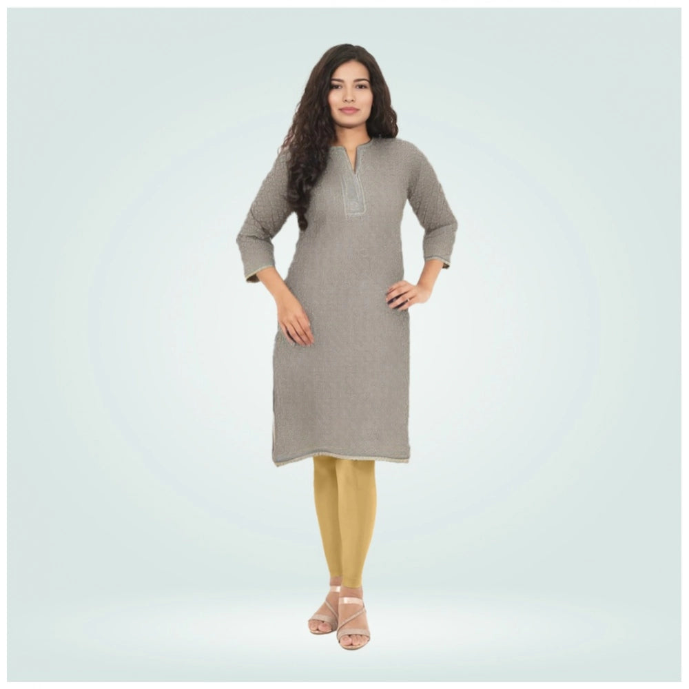 Generic Women's Cotton Blended Solid Shimmer Ankle leggings (Beige)