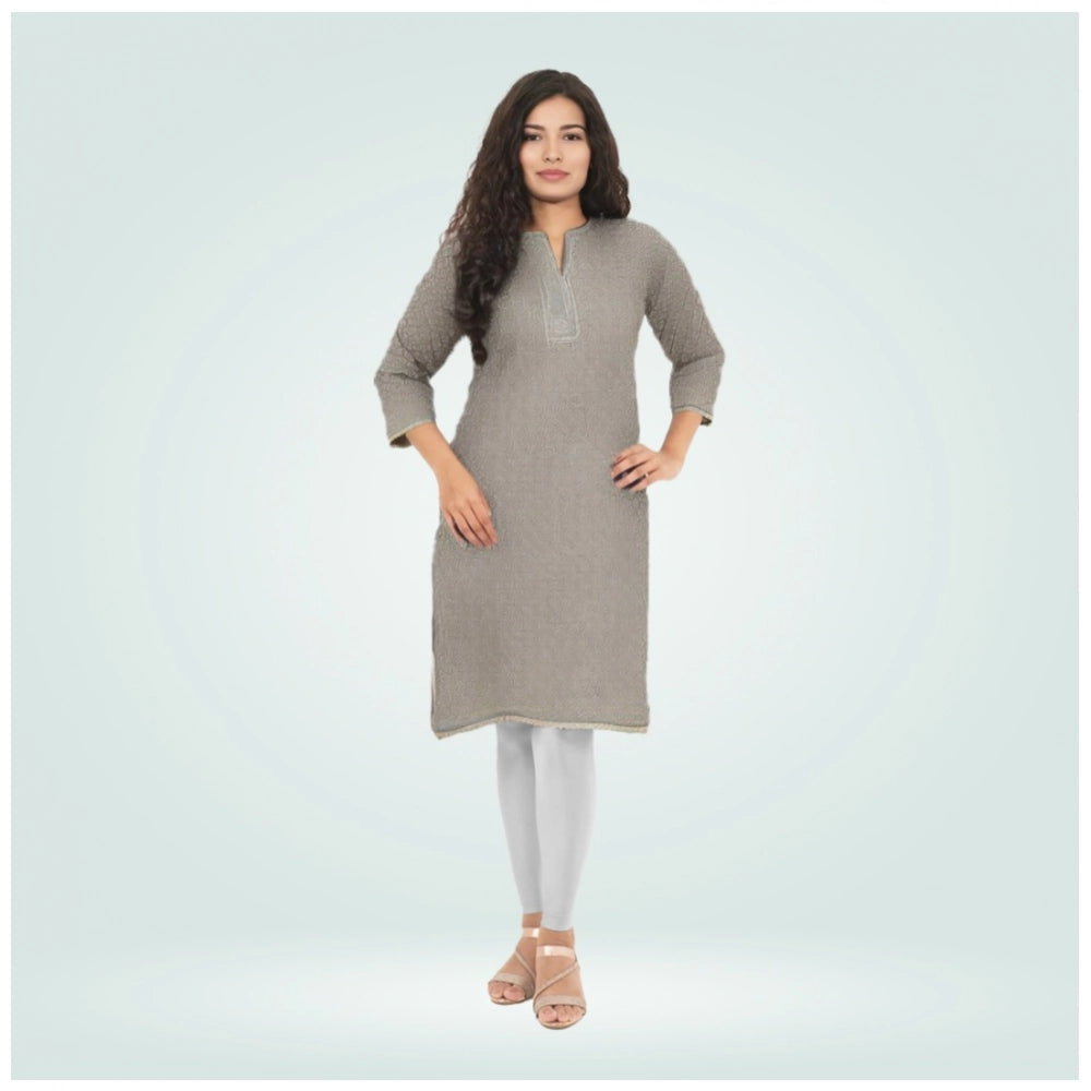 Generic Women's Cotton Blended Solid Shimmer Ankle leggings (Silver)