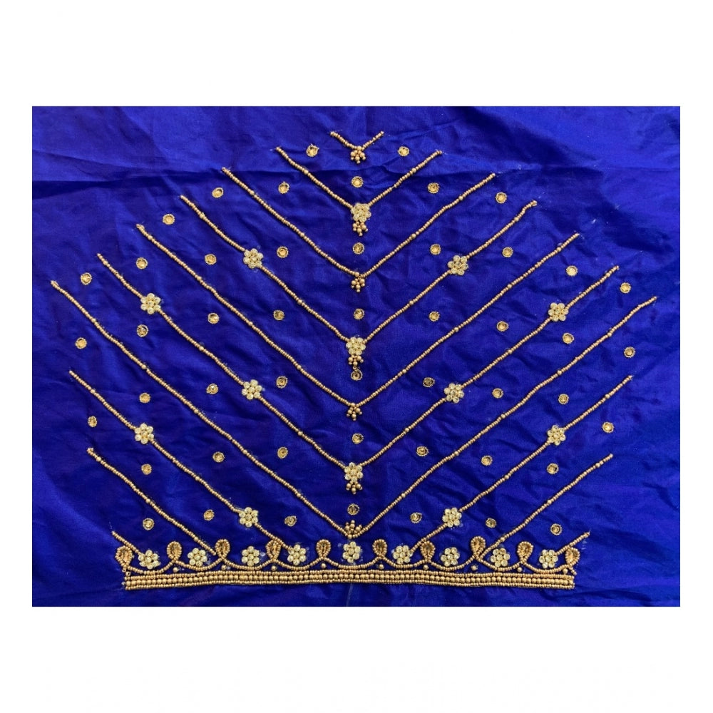 Generic Women's Cotton Silk Self Design Unstitched Blouse Piece (Dark Blue, 80-100 cm)