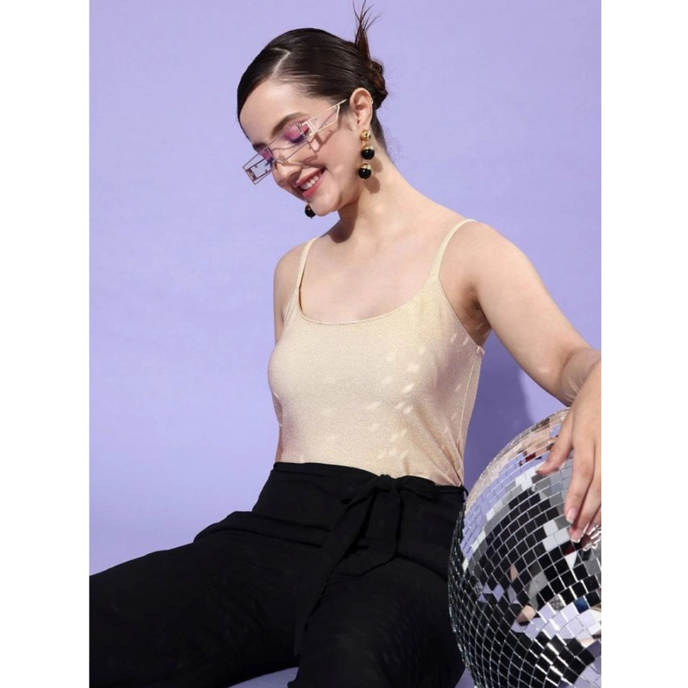 Generic Women's Polyester Embellished Sleeveless Jumpsuit (Gold - Black)