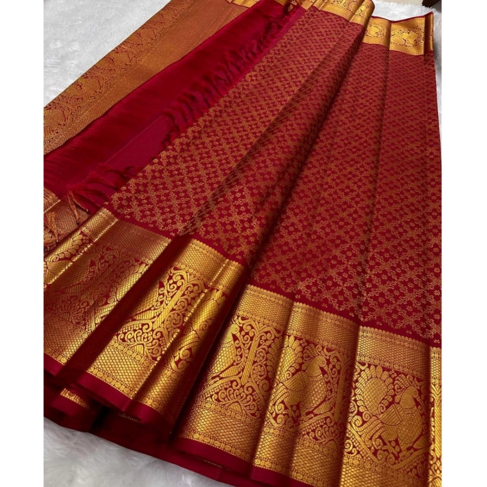 Generic Women's Silk Printed Saree With Unstitched Blouse 5.5Mtr (Maroon)