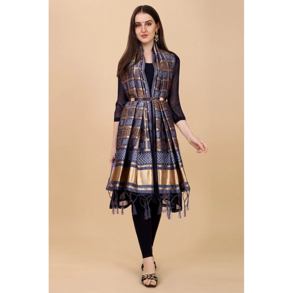 Generic Women's Silk Pure weaving Work Duppatta (Grey, Length: 2-2.3 Mtrs)