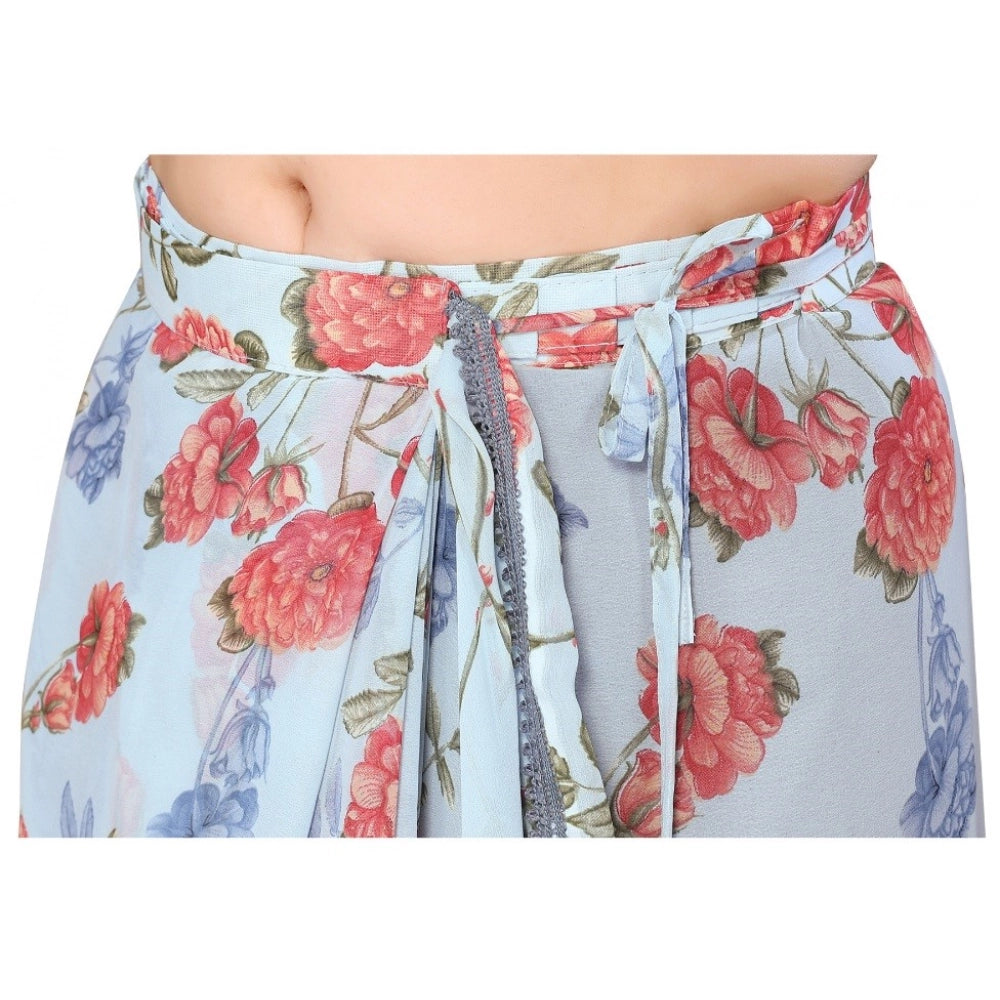 Generic Women's Small Lace Georgette Printed Ready-to-Wear Saree With Unstitched Blouse 5.5 Mtr (Sky Blue)