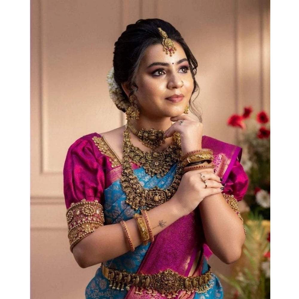 Women's Soft Litchi Silk Jacquard Work Saree With Unstitched Blouse